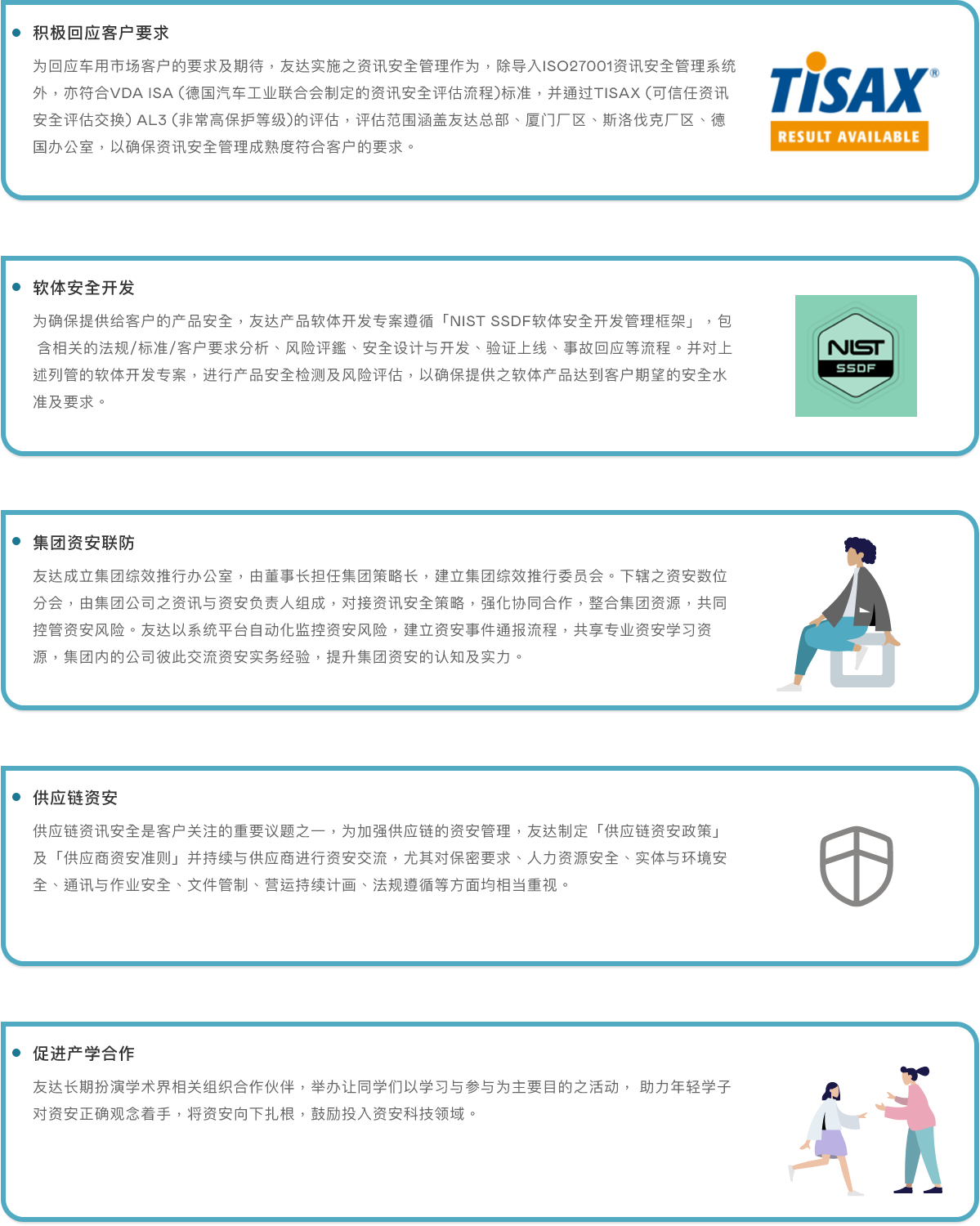 世界杯官方网页版以「维护资安,从我做起」为对同仁的期许,实施全面资安宣导、通识与专业课程教育训练。包含:
