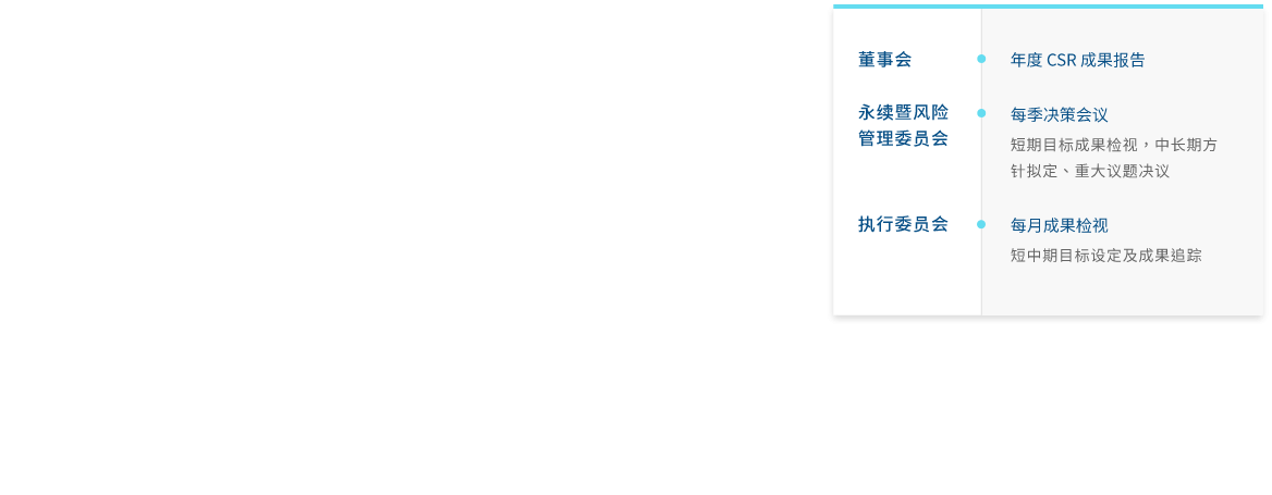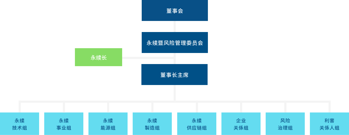 世界杯官方网页版成立永续委员会(2023年更名可持续暨风险管理委员会),作为公司永续发展运作的最高治理机构,并持续策化推动企业永续转型,透过永续长及永续专责单位,统筹中长期永续发展的策略方向。
